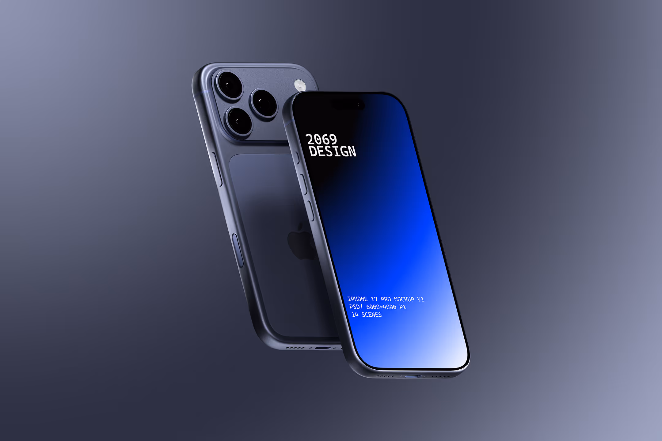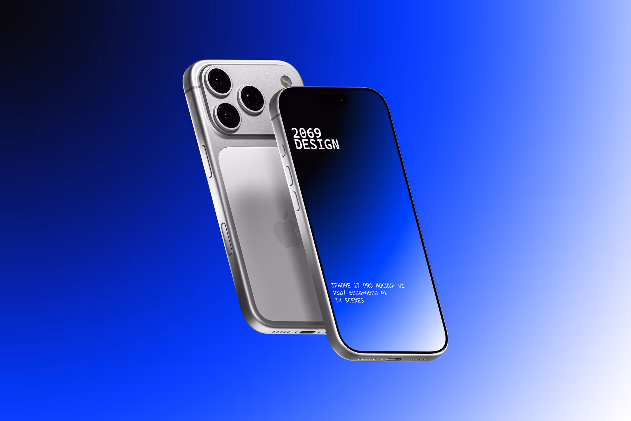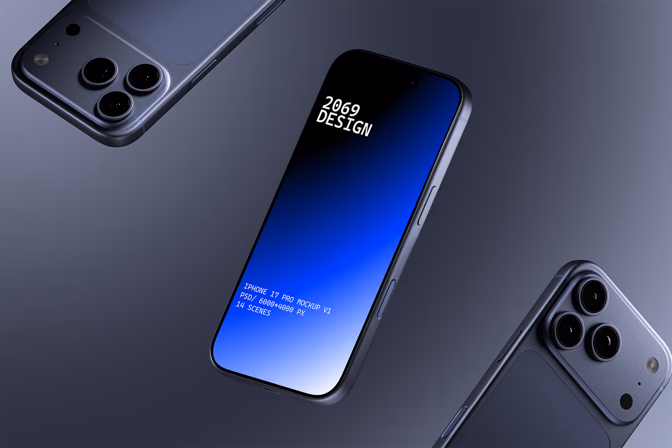A sleek iPhone 17 Pro Mockup pack Collection featuring ultra-clean, minimalistic renders crafted with precision — perfect for showcasing modern, high-end design presentations.