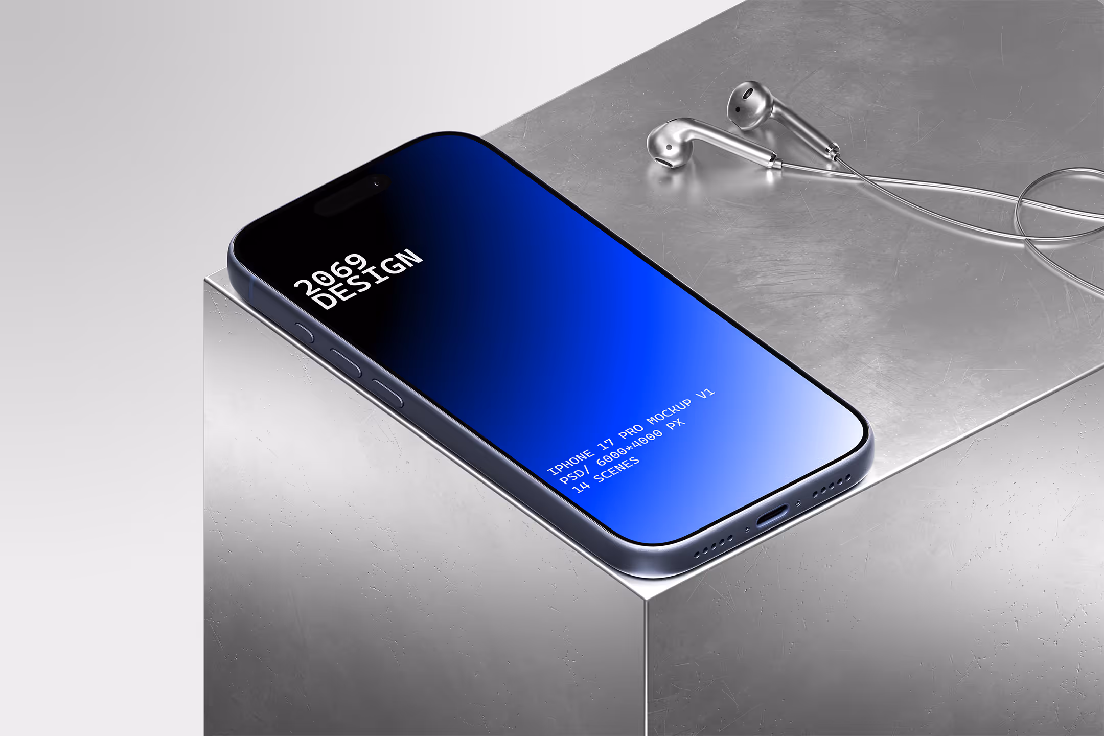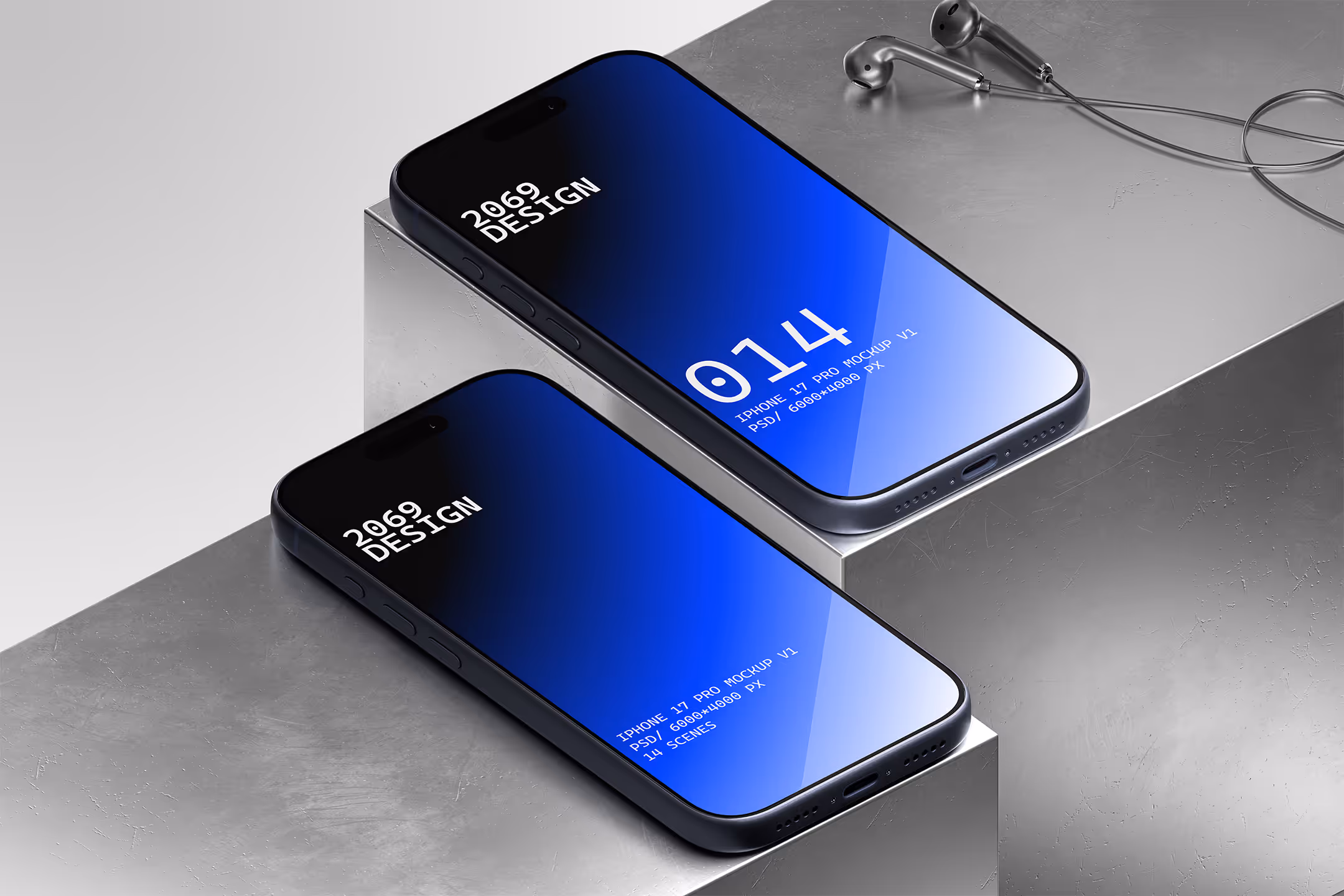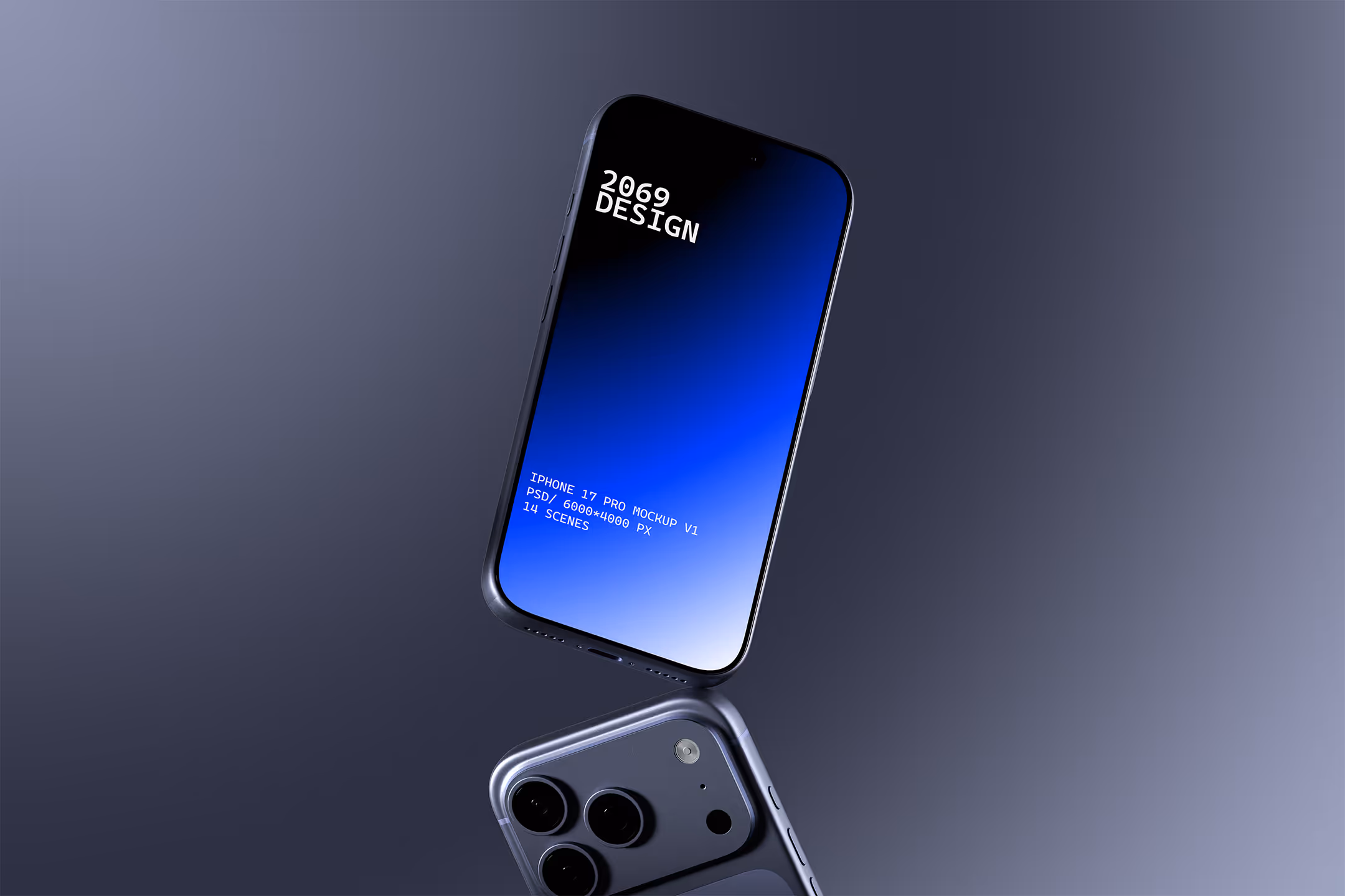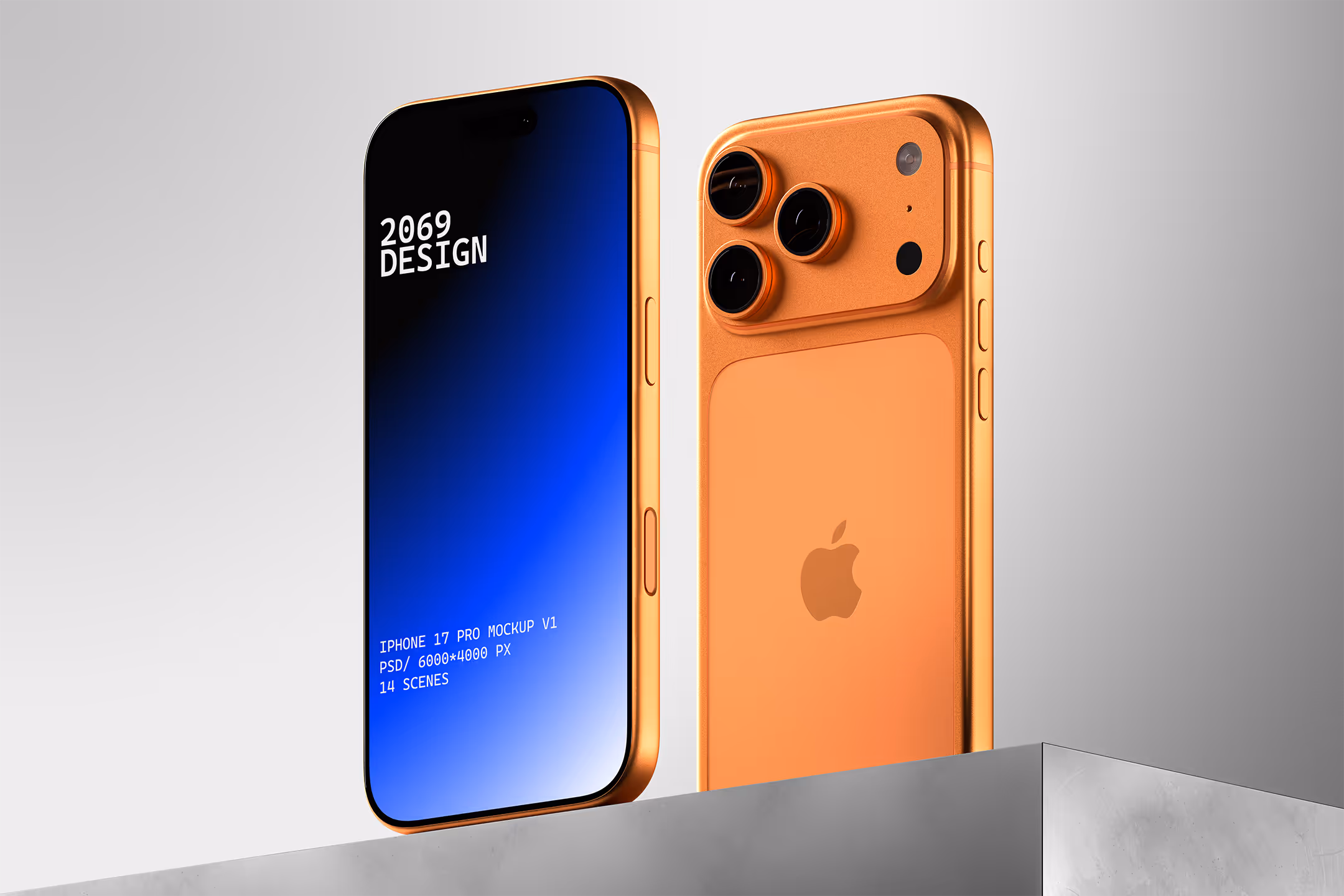 A sleek iPhone 17 Pro Mockup pack Collection featuring ultra-clean, minimalistic renders crafted with precision — perfect for showcasing modern, high-end design presentations.