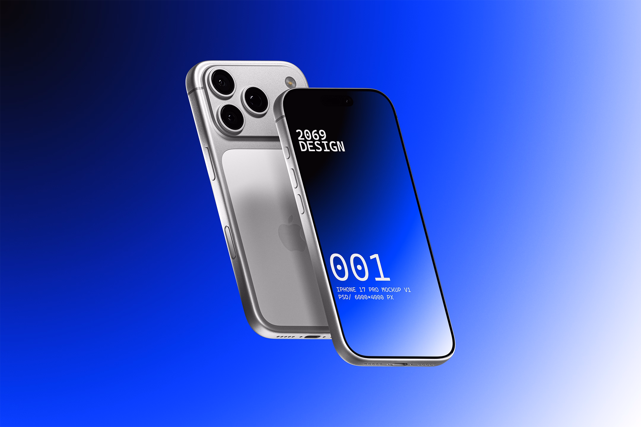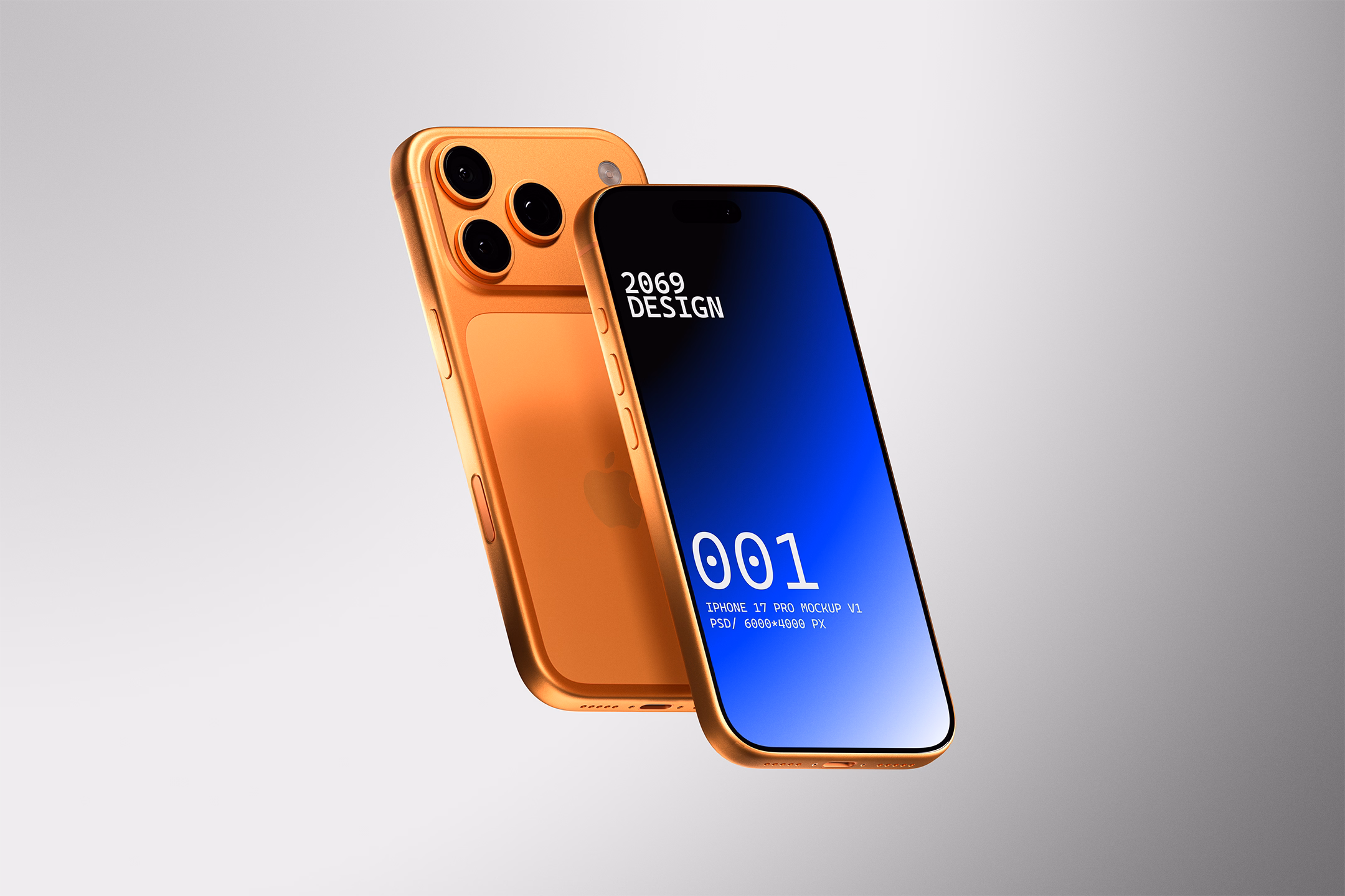 A sleek iPhone 17 Pro Mockup Collection featuring ultra-clean, minimalistic renders crafted with precision — perfect for showcasing modern, high-end design presentations.