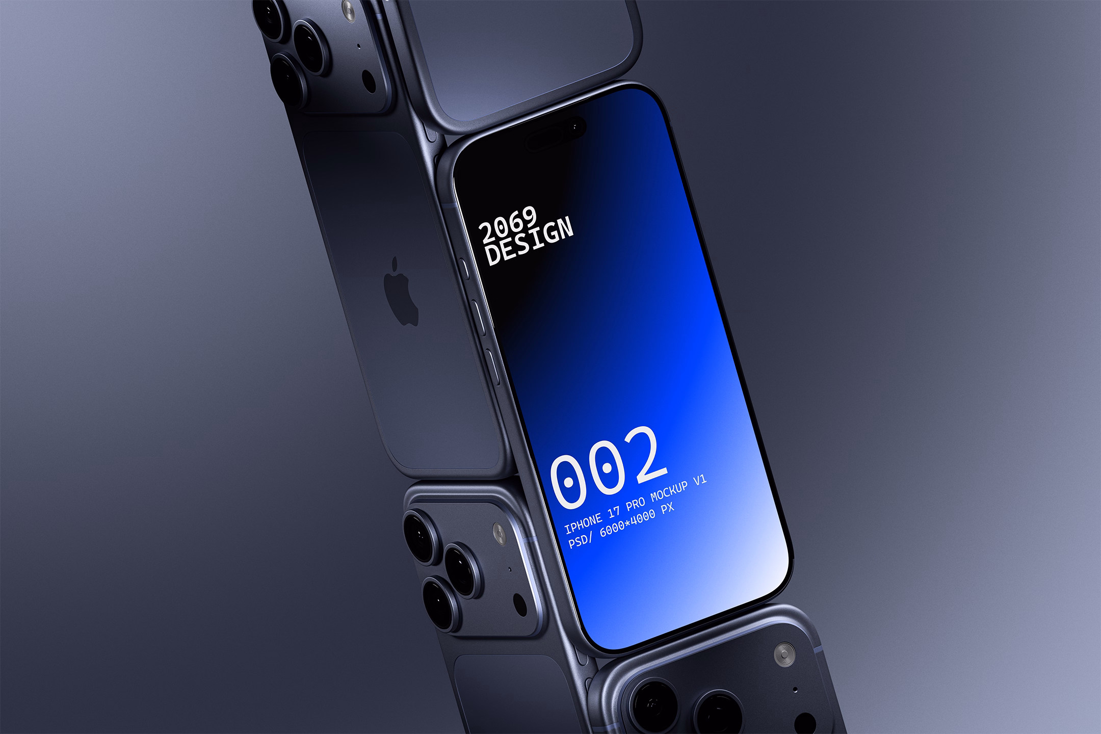 A sleek iPhone 17 Pro Mockup Collection featuring ultra-clean, minimalistic renders crafted with precision — perfect for showcasing modern, high-end design presentations.