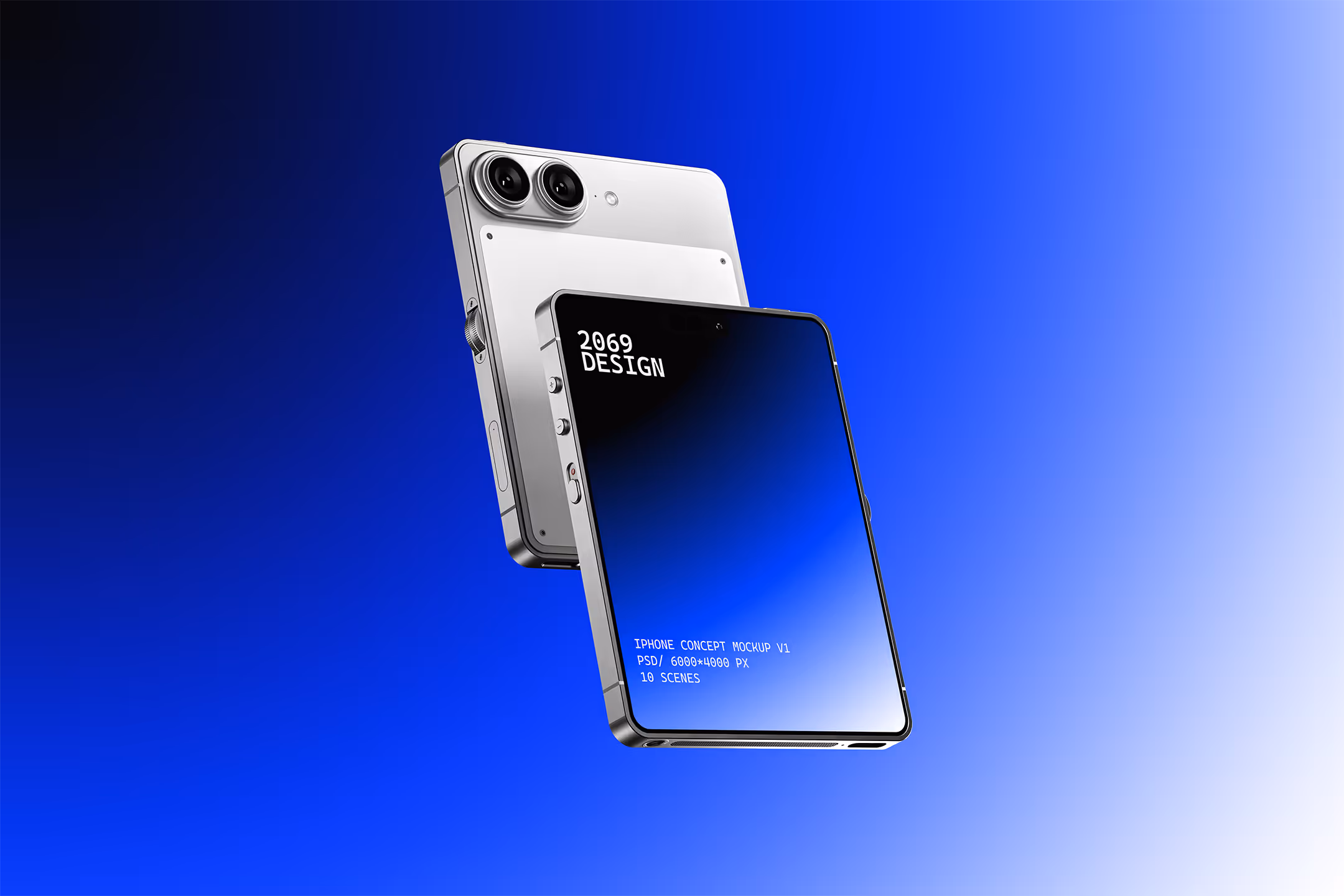 A bold, reimagined iPhone concept mockup pack with a 4:3 screen ratio and industrial proportions — crafted for designers who want futuristic, cinematic mockups that stand out.