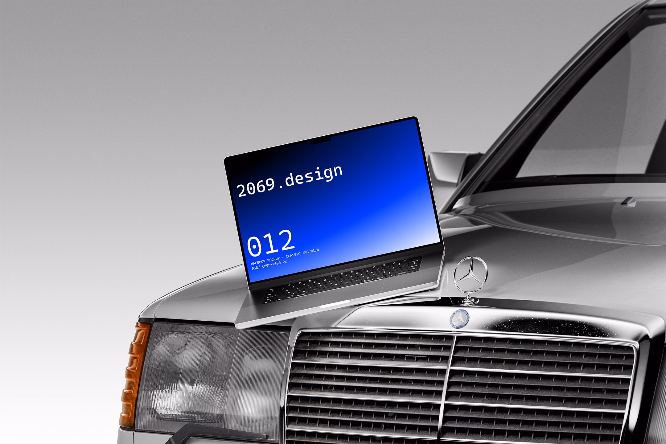 Macbook Mockup inspired by the Ocdschool Classic AMG W124 — crafted for designers who want luxury, automotive-inspired aesthetic.
